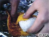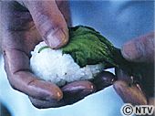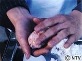 | 手の平に少し塩をふり、(3)をにぎる。 | ![]() |