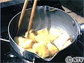 | 油で(3)を泡が出なくなる位まで、カラリと揚げる。 | ![]() |
