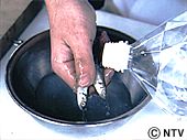 | 稚鮎を水で洗う。 POINT | ![]() |
