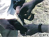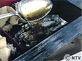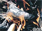 | (2)を銀紙で包み、火の中に入れ蒸し焼きにする。これで下ごしらえは終了。 | ![]() |