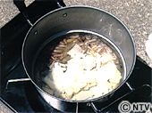 | 鍋に出し汁を入れ、調味料を加え、切った竹の子を煮る。 | ![]() |