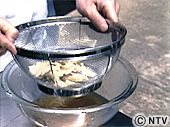 | (3)をざるに漉して汁と具に分ける。 | ![]() |