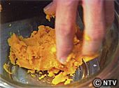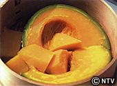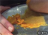| 蒸しあがったかぼちゃの皮を取り、裏ごしする。 | ![]() |