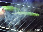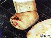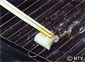 | 網の上で焼き、火が通ったら2つに切る。 | ![]() |
