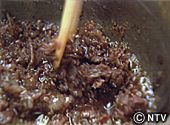 | 牛肉を細切れにし、鍋に油をひき牛肉を炒めタレを加え、汁気がなくなるまで炒め煮にする。 | ![]() |