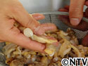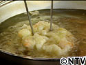 かき揚げは菜箸で穴を開けると早く中まで火が通るよ!!