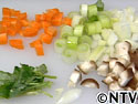玉ねぎ、人参、しいたけはサイコロ状に切る。長ネギは輪切りにし、1とボ-ルで混ぜる