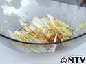 キャベツはさっと茹で、絞って水気をよくきり細かく刻む。