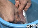 中骨・腹の所の骨を取り除き、臭みをとるため5分程酒・生姜汁につけておく
