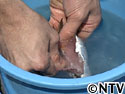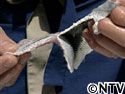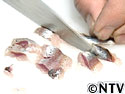キッチンペーパーで水気をとり、7ミリほどのぶつ切りにする