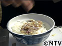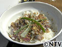 どんぶりにごはんを盛り、その上に叩いたいわしをのせる