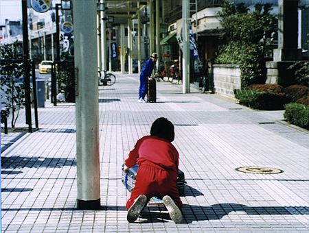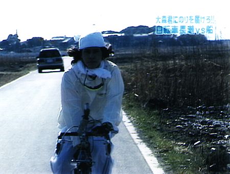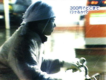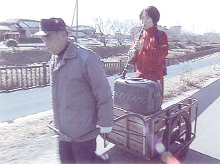 地元4丁目の千葉さんのリアカーに乗せてもらい、歩数を節約する太一。すでに勝利を確信か?クラリネットで「ゴッドファーザー」を奏でながらの走行。のどかに最寄りのバス停を目指す。