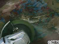 埋めた材質がしっかり結合するためにも、破損部分を平らにしなければならない。 まず、破損部分をサンダーと呼ばれる電動やすりで削る。 船体のキズが平らになったところでパテで隙間を埋める。