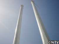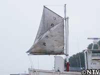 天高く伸びるつれたか丸のポール。 マストにかかれた船名が誇らしい。
