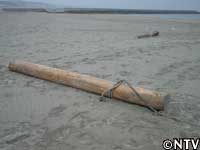 近くの砂浜に打ち上げられていた流木。 直径20cm、長さ4mという絶好の木材。 果たしてつれたか丸の一部に生まれ変わるのだろうか?