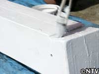 木材の周りを削って整形。きれいな木目が出てきた。 しかし、このまま船に取り付けても、時間がたつと、徐々に曲がってしまう。 そのため、しばらく乾燥が必要。 乾燥させること数日。 しっかり乾かされた木材はペンキを塗られ、マストらしくなった。