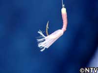 そこで、ハリスに光を反射しやすい管がついており、これにスルメイカが寄ってくる仕掛けになっている。 |