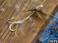 胴になる糸から複数の針は、ハリスを介してつけてある。 |