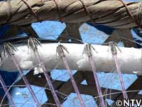 その仕掛けは、ナイロンの布で包まれたソフトボール大の団子状のもの。 |