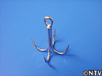 いかりのような形の釣り針、よく見ると少し加工されている。
