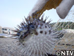 つれたか丸修復時、漁港で見つけた可愛らしいハリセンボン。