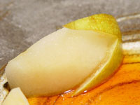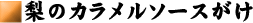 皿に切った梨を盛り、その上にカラメルソースをかければ出来上がり。