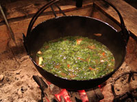 程よく火が通れば、味噌、仕上げにほうれん草を加えて完成。