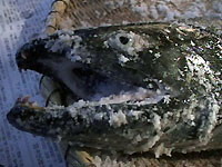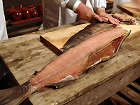 新巻鮭に湯をかける