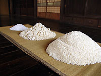 大きな樽に塩3、麹5、米8を入れて約9ヶ月間熟成させる