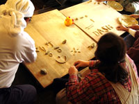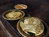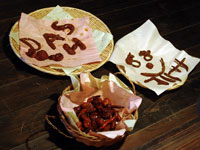 生地をちぎって、形を作り網にならべて、乾燥させる。