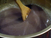 砂糖を少しずつ加え、ぐつぐつ煮ながら十分に溶かす。