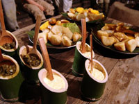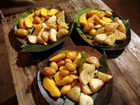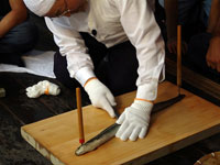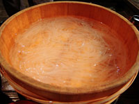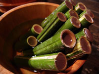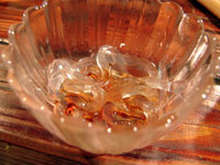 水ようかんを作るときにできた寒天液を固まらせて酢をかける。