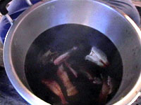さばいた鰻からとれた骨と頭からだしをとり、しょうゆ、酒、みりん、砂糖を加えてタレをつくる。