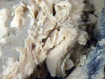 粘りが出てきたところで白あんを入れる。白あんも砂糖同様芋の半分の重さ入れる |