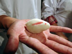 白いんげんを一晩水に浸して水分を含ませたものを茹でる。茹で上がったら水にさらしながらかきまぜ皮を取る。皮のとれたものをさらしで漉し、しばらくおく。置いて沈殿したものを再度さらしで漉す。それを加熱しながら砂糖を加え練れば白あんの完成。 |