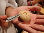 加熱し練ったものが手につかなくなれば、再度漉しザルで漉す |