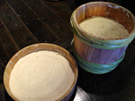 さばいたカレイを刻み、すり鉢に移して練る。すり鉢にネギとショウガのみじん切りと塩大さじ1杯を加えてさらに練る。