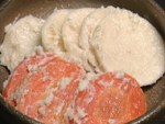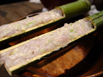 表面が滑らかになれば、竹の筒などに敷き詰めてつみれは完成。