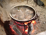 土鍋に1500mlの水を入れ、ダシ昆布を入れる。