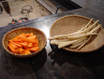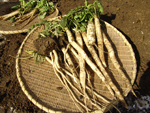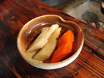 塩漬(一次加工) 守口大根1kgに対し、塩250gを入れ、大根の水分を出し、腐らないようにする。 濃度の高い塩分につけておかないと夏に腐ってしまう。 DASH村では、一斗樽に守口大根を9本(1kg分)、塩を250g入れ、室温5〜10度の室にしまった。 下漬(二次加工) 酒粕に漬けて塩分を抜く 一回目味付け(一番) 味の調整をした酒粕に漬ける。大根と酒粕を交互に重ねて漬ける。 二回目味付け(二番) から4〜5ヶ月たった頃、再び樽から取り出し、酒粕を拭い取り、漬けなおす。 この段階からは酒粕に砂糖を加え、調整した漬け床を用いる 三回目漬け(三番) 以上のような味付けを3〜4ヶ月ごとに3〜5回繰り返す。 漬け替え回数が多いほど、まろやかな味で、高級品とされる。 仕上漬 酒粕に味醂粕、砂糖を加えた新しい酒粕を用い、最後の仕上漬けを行う。 塩漬けから仕上げ漬けまで2年かかる。 一斗樽に5本程の守口大根と、人参を入れて糠で漬け、室温5〜 10 度の室で保管。 適宜かき混ぜる。 戻る