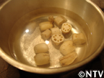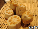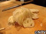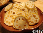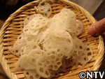 蓮根4ふし、麦味噌210g、辛子70g、砂糖大さじ2、小麦粉 適量、水 適量(天ぷらの生地用) 蓮根を酢水で10分程茹でる。 茹で終わったら水をきっておく。 麦味噌・辛子・砂糖をボールに入れ、だまがなくなるまで混ぜる。 水を切った蓮根にの辛子味噌を詰める。 小麦粉の中に粉からしと水を入れ、天ぷら用の生地を作る。 辛子が詰まった蓮根にの生地をからめて160℃の油で5分揚げる。 揚げ終わったら、輪切りにし完成。 蓮根1〜2ふし、辛子醤油 少々(タレ用) ※蓮根は一番最後にできた若い部分のものを使用すると良い 蓮根を薄切りにする。 お湯で、蓮根が浮き上がってくるまで、さっと茹でる。 茹で終わったら水で冷やす。 最後に水を切って皿に並べれば出来上がり。 これを辛子醤油で食べます。 戻る