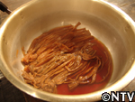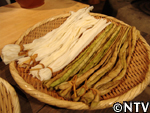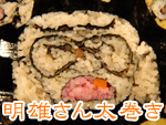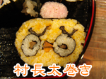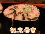 かんぴょう、芋がらは(のりの長さにあわせて切り、藁でしばっておいたもの) しょうゆ、酒、砂糖、塩、水2Lで20分ほど煮詰め、ニンジン(縦長に切ったもの)は砂糖、塩で5〜10分茹でる。高菜は塩づけにしたものを海苔の長さに合わせておく。