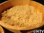 硬めに炊いた2升のお米と、すし酢(酢・砂糖・塩・酒を混ぜ、いったん火を通したもの)を混ぜる。