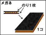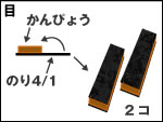 1/4の大きさの海苔に、かんぴょうを置き、海苔で挟む。これを2個作る。 |