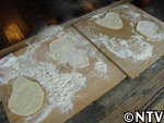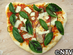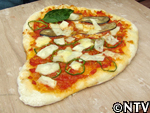 最後にチーズをのせて、登り窯で15分程焼けば出来上がり。お好みでバジルをのせます。 |
