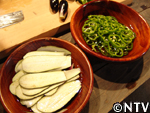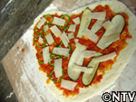 まるくしたピザ生地の上に、 のピザソースをしき、その上にナス・ピーマンをスライスしたものをのせる。 |