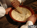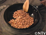 一晩水につけた落花生をすり潰し、700ccの水を加え、混ぜる。