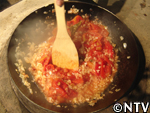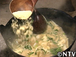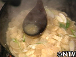 沸騰したダシ汁に味噌を溶かす。