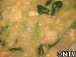 適当な大きさに切ったねぎ、干し大根、油揚げ、ほうれん草を入れる。