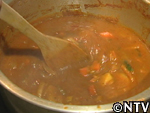 塩小さじ1を入れ味を整え、さらに10分煮込めば完成。(最後は鍋に蓋はしないで煮込む) |